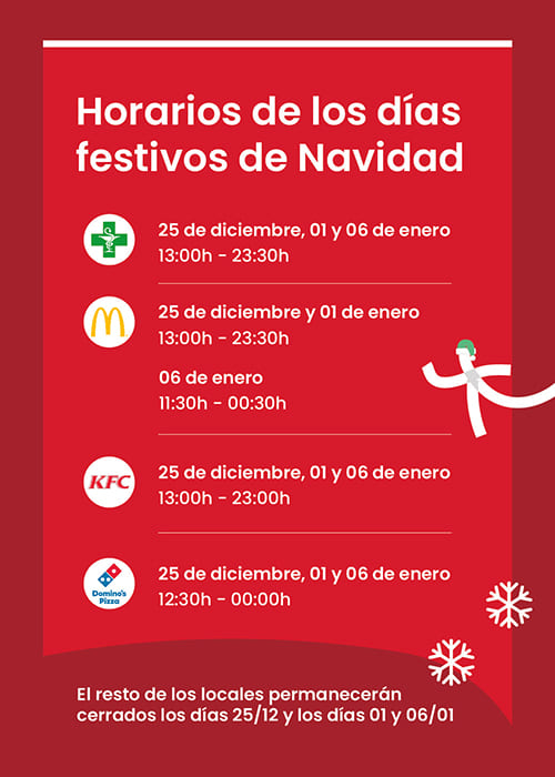 Horarios especiales en Madrid Sur para los días festivos de Navidad