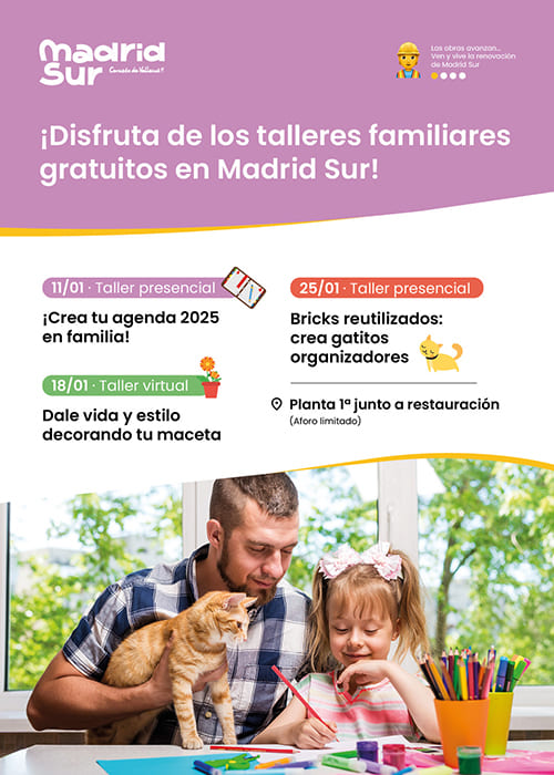 Talleres creativos familiares gratuitos en CC Madrid Sur – Enero 2025