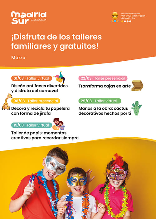 Talleres creativos familiares gratuitos en CC Madrid Sur – Marzo 2025
