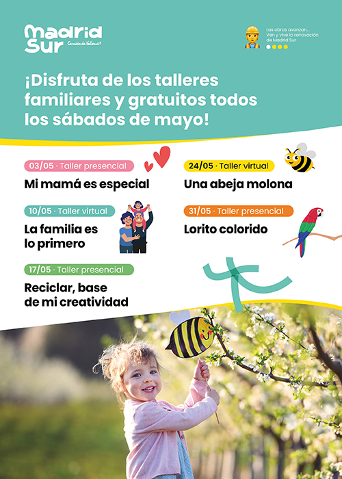 Talleres creativos familiares gratuitos en CC Madrid Sur – Mayo 2025