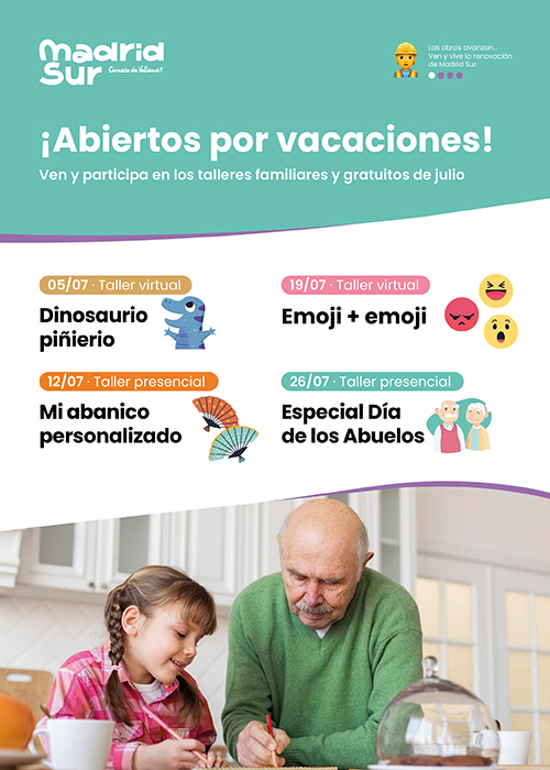 Talleres creativos familiares gratuitos en CC Madrid Sur - Julio 2025