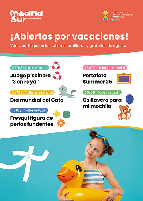 Talleres creativos familiares gratuitos en CC Madrid Sur - Agosto 2025