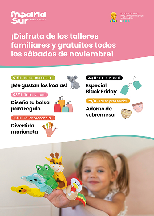 Talleres creativos familiares gratuitos en CC Madrid Sur - Octubre 2025